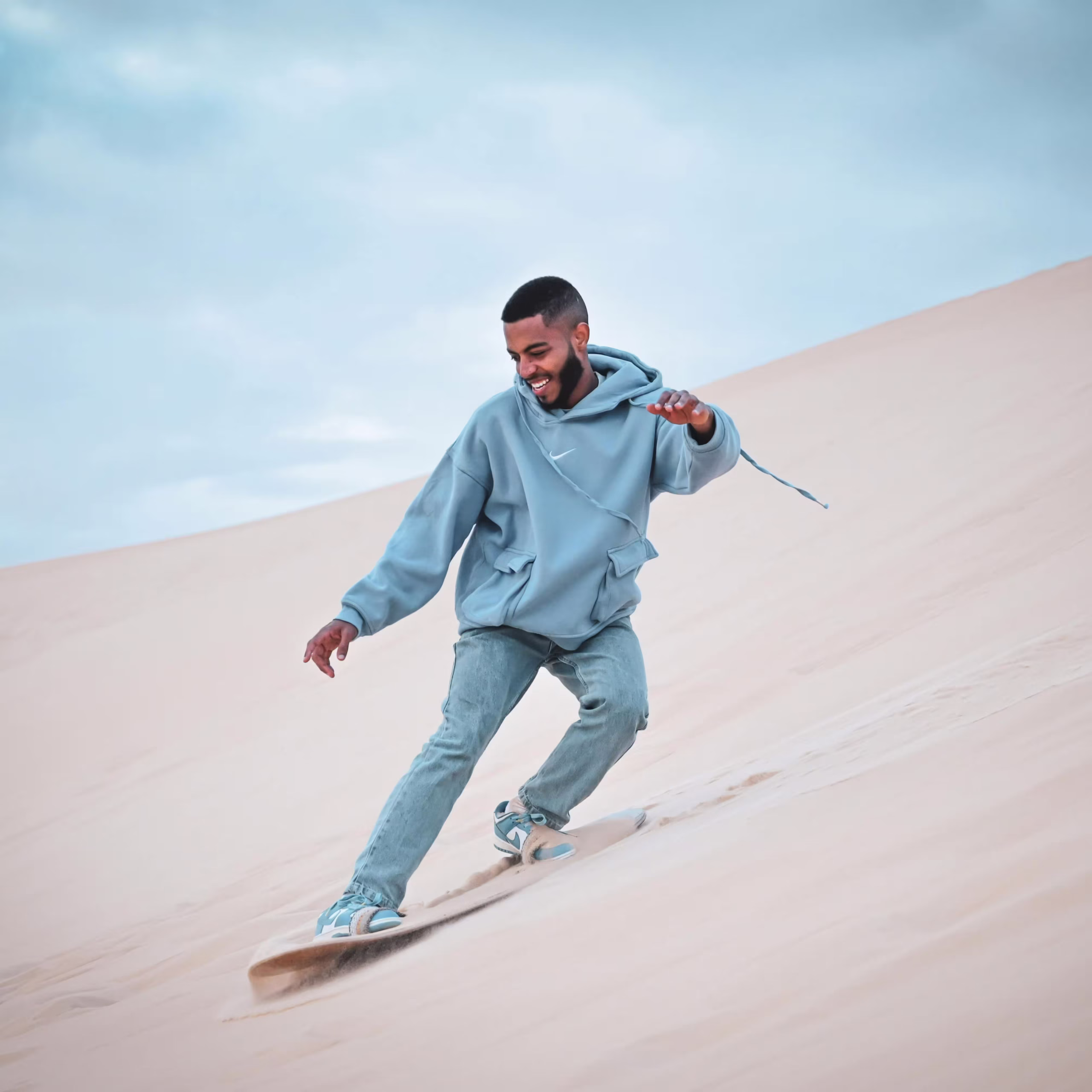 This combo is perfect for pure adventure lovers! Ride your quad along thrilling beach trails and soft dunes, enjoying the fresh sea breeze and stunning coastal views. Then stop for a fun and active sandboarding session on golden sandy slopes. No experience is needed — just bring your energy and sense of fun. A professional guide will be with you every step of the way to ensure the experience is safe, exciting, and unforgettable.